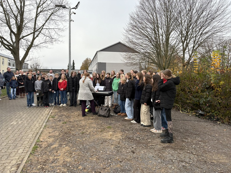 Der Schulchor unter Leitung von Jessica Burggraf, eröffnete die Einweihung des Otto-Wels-Weges, als ein Ort des Erinnerns und des Lernens.