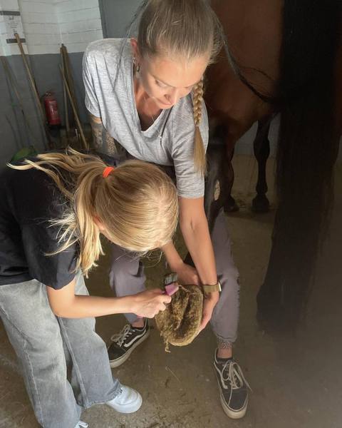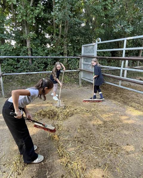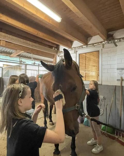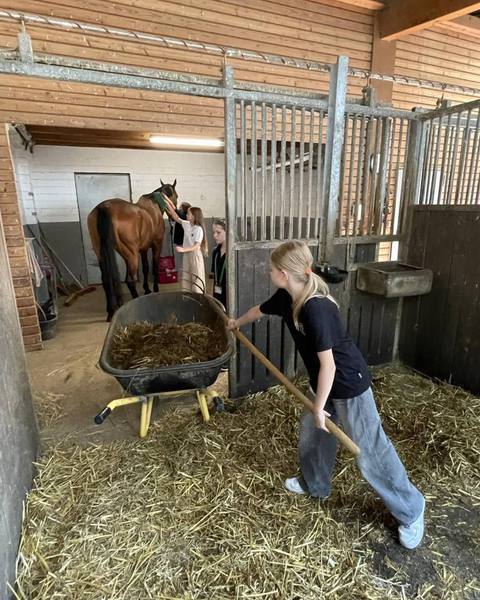 In der AG-Zeit ging es nicht nur ums Streicheln und Kennenlernen, sondern auch um praktische Aufgaben: misten, striegeln, Hufe auskratzen und vieles mehr – fachkundig angeleitet von Frau Maasch,
